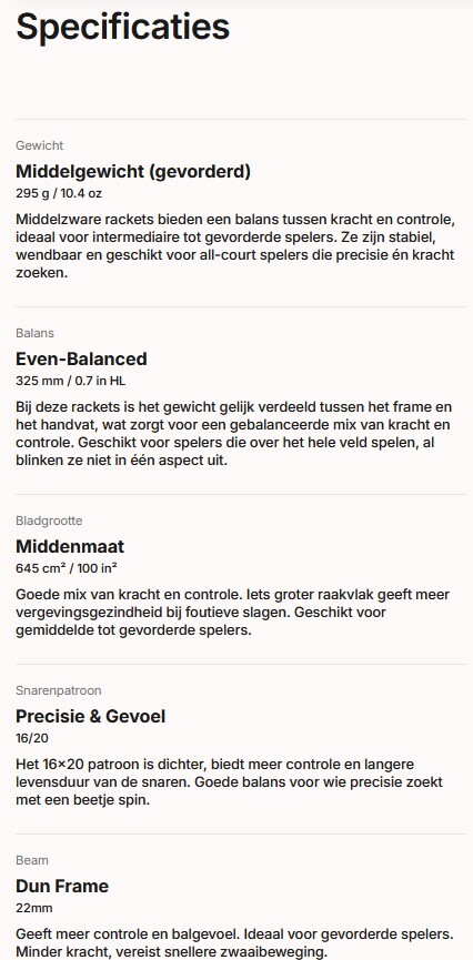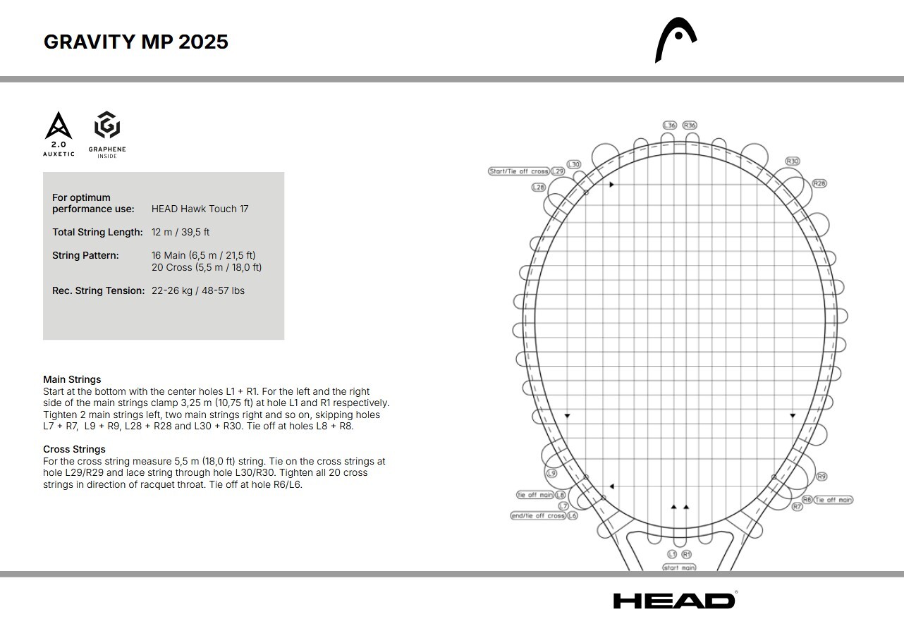 Beheers het spel met ongeëvenaarde precisie en controle met de HEAD GRAVITY MP 2025. Dit racket, in een opvallende combinatie van Zwart en Ice Blue, is ontworpen voor de moderne, agressieve speler die controle en een uitzonderlijk balgevoel voorop stelt. Dankzij de innovatieve Auxetic 2.0 technologie en de massieve sweetspot van de Gravity-serie, ervaar je een superieur balgevoel en een vergevingsgezinde respons, zelfs bij off-center slagen. Het dynamische 16/20 snarenpatroon zorgt voor de perfecte mix van controle en spin. De Gravity MP 2025 is het wapen bij uitstek voor diegenen die het tempo bepalen, de bal perfect plaatsen en de tegenstander uit balans brengen met hun meesterlijke controle over elke slag.