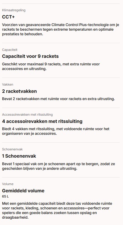 CCT+-klimaatbeheersingstechnologie voor bescherming van jouw rackets