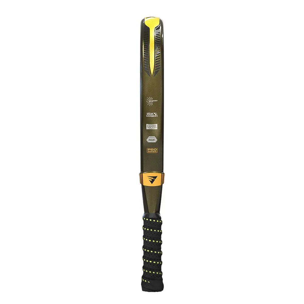 Op zoek naar het racket van een professional dat zowel explosiviteit als controle biedt? De Siux Electra STUPA PRO ST4 in geel/zwart is het officiële wapen van padelster Franco Stupaczuk. Dit racket, met zijn hybride vorm en medium-hoge balans, is de perfecte partner voor de gevorderde speler die aanval en verdediging naadloos wil combineren. De 15K carbon constructie en de harde EVA-kern zorgen voor een krachtige en directe respons bij elke slag, terwijl de ruwe, zandachtige afwerking je de mogelijkheid geeft om maximale spin te genereren. Met de ST4 ben je in staat om de rally te domineren met zowel brute kracht als strategische precisie.