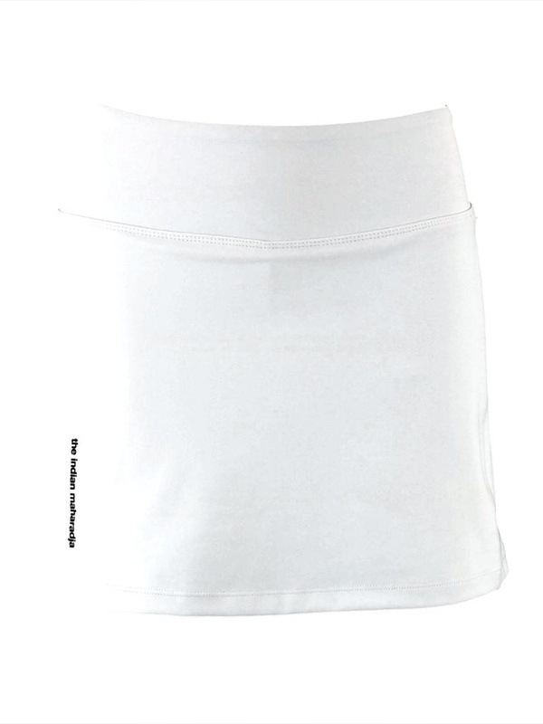 De Indian Maharadja Kadiri Women Skirt (White) is een mooi rokje met een ingebouwd compressiebroekje uit de collectie van Indian Maharadja. Het stijlvolle rokje heeft een hoge elastische tailleband en zorgt voor een comfortabele pasvorm. Het materiaal van de rok zorgt ervoor dat lichaamsvocht naar de buitenkant van de stof wordt verdreven, waardoor het snel zal verdampen en het materiaal droog en comfortabel blijft. Bovendien beschikt het rokje over een bal-pocket, ideaal om je tennis- of padelbal in te stoppen tijdens de rally.