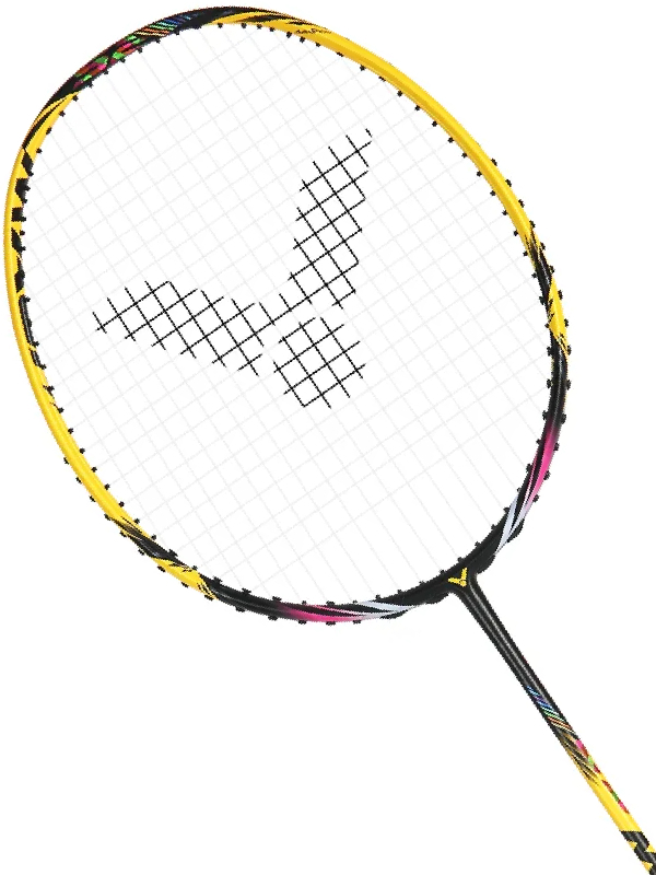 Ervaar pure adrenaline met de VICTOR AURASPEED 25MACH E – RACING YELLOW, een racket dat snelheid en responsiviteit tot in de kern belichaamt, perfect voor de speler die elke seconde telt en reageert met bliksemsnelle precisie. Dit model is uitgerust met geavanceerde Auraspeed technologieën, en de dynamische Racing Yellow kleurstelling schreeuwt ‘snelheid’ nog voordat je de shuttle raakt, waardoor je de rally domineert met een ongeëvenaarde wendbaarheid en een verpletterende, snelle afwerking.