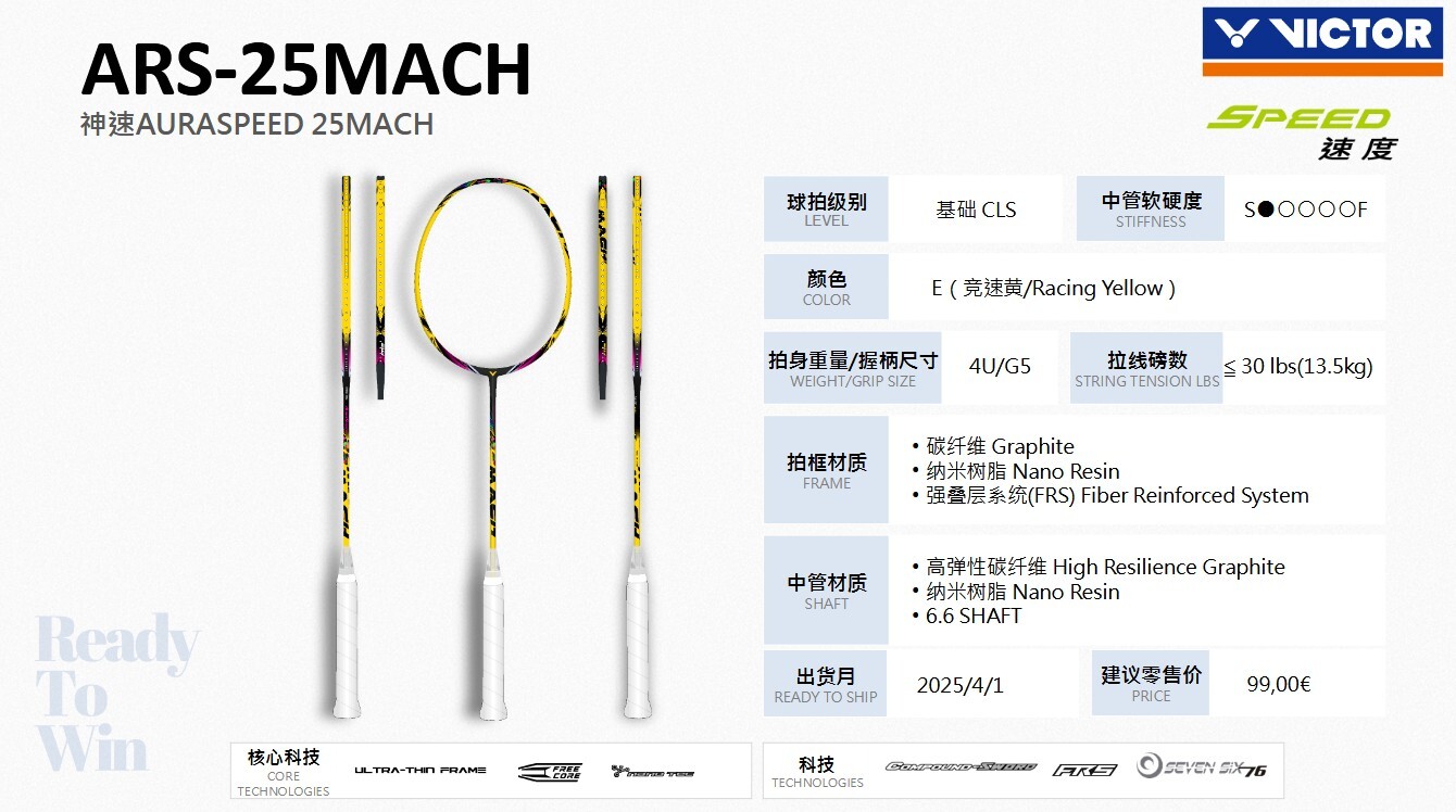 VICTOR AURASPEED 25MACH E – RACING YELLOW