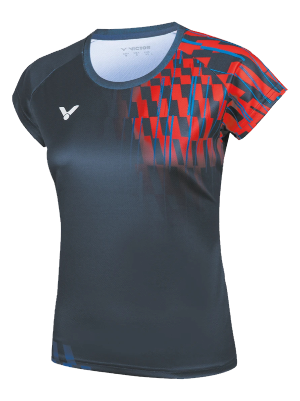 Het VICTOR T-51001TD B damesshirt in navy/rood combineert sportieve klasse met functioneel design. Het lichtgewicht, ademende materiaal houdt je droog en comfortabel tijdens intensieve wedstrijden of trainingen, terwijl de getailleerde pasvorm zorgt voor een elegante en bewegingsvrije fit. De stijlvolle combinatie van donkerblauw met krachtige rode accenten geeft het shirt een dynamische uitstraling. Ideaal voor badminton, squash of andere racketsporten waarbij comfort, prestaties en uitstraling samenkomen.
