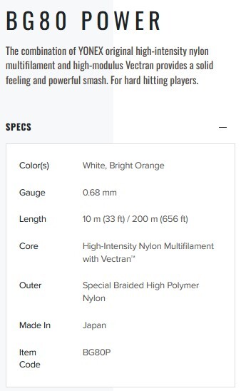 YONEX BG 80 POWER – WIT – Set 10M