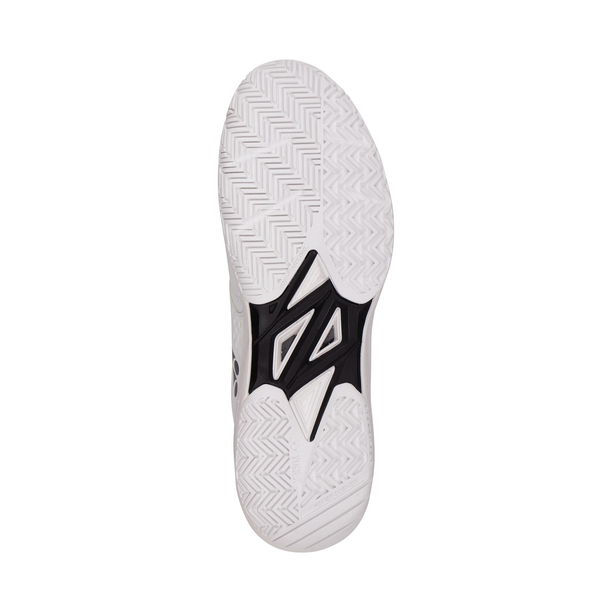 Bereik elke hoek van het veld met de Yonex Sonicage 3 – All Court in helder wit, de ideale lichtgewicht tennisschoen voor spelers die snelheid en wendbaarheid tot hun handelsmerk maken. Deze schoen combineert de befaamde Power Cushion technologie voor superieure schokabsorptie met de vernieuwde FlexQuip Comfort constructie, die de druk over de wreef gelijkmatig verdeelt voor een natuurlijke pasvorm tijdens intensieve sprints. Dankzij de duurzame All Court-zool geniet je op zowel gravel, hardcourt als kunstgras van optimale grip, terwijl de versterkte hielkap je de stabiliteit biedt die nodig is voor snelle, explosieve zijwaartse bewegingen.