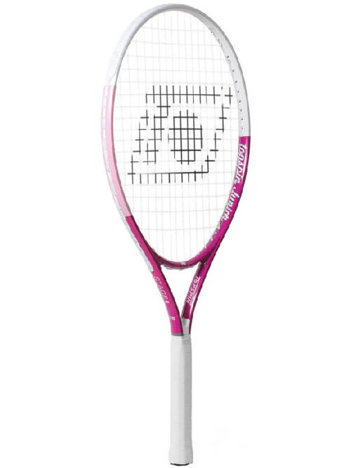De Topspin Junior 25 inch in elegant paars en wit vormt de perfecte brug voor ambitieuze junioren (ca. 9 tot 11 jaar) die op het punt staan de overstap naar een volwassen racket te maken. Dit racket combineert een groter bereik met een verrassend lichtgewicht frame, waardoor jonge spelers de nodige slagkracht ontwikkelen zonder in te leveren op precisie of snelheid aan het net. Het verfijnde design en de hoogwaardige afwerking geven de speler niet alleen een professionele uitstraling, maar ook het technische voordeel dat nodig is om met vertrouwen en controle competitieve rally’s naar hun hand te zetten. -