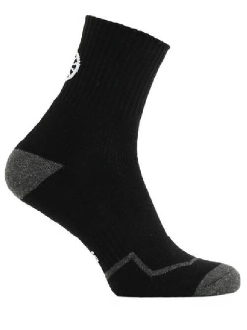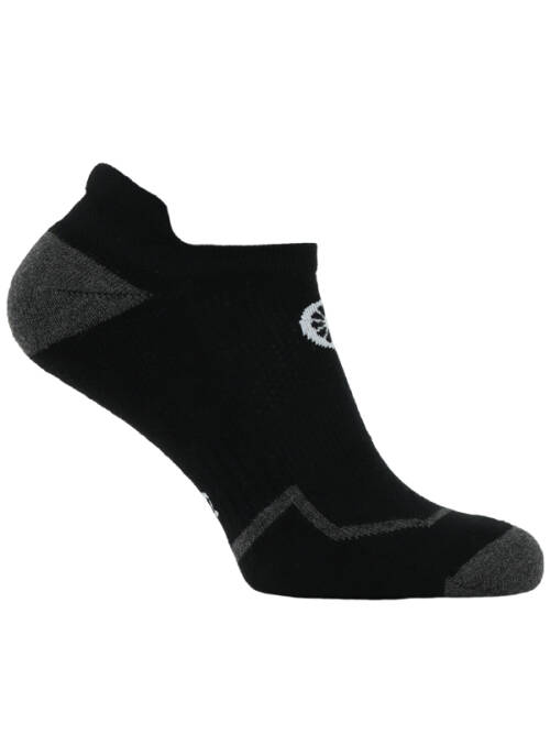 Ervaar lichtgewicht prestaties met een verfijnde uitstraling dankzij de Indian Maharadja Kadiri Sock Low in zwart/grijs. Deze lage sportsok combineert een strak, tijdloos design met functionele details die het verschil maken tijdens elke training of wedstrijd. Subtiel aanwezig, maar groots in comfort. Dankzij de versterkte hiel- en teenzones worden drukpunten verminderd en slijtage beperkt, zodat je langer kunt vertrouwen op optimale prestaties. Het ademende, vochtregulerende materiaal houdt je voeten fris en droog, zelfs wanneer de intensiteit stijgt. -