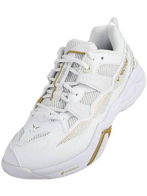 De VICTOR C60 AX in wit/goud is een veelzijdige indoorschoen die comfort, stabiliteit en gebruiksgemak perfect combineert. Deze schoen is ideaal voor spelers die op zoek zijn naar een betrouwbare basis met goede demping en ondersteuning tijdens elke rally.
