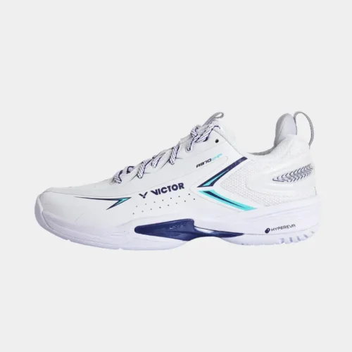 Ervaar de ultieme synergie van elegantie en topsportprestaties met de Victor A970cHP AB, uitgevoerd in het verfijnde White / Spectrum Blue. Deze high-end indoorschoen is het paradepaardje voor de veeleisende sporter die geen genoegen neemt met minder dan absolute stabiliteit en een bliksemsnelle respons. De kern van de schoen wordt gevormd door de revolutionaire HYPEREVA-tussenzool, die niet alleen een vederlicht gevoel geeft, maar ook een ongeëvenaarde schokabsorptie biedt om je gewrichten te sparen tijdens de meest intensieve sprongen en lunges. Met zijn gestroomlijnde witte basis en diepe blauwe accenten straalt de A970cHP pure klasse uit, terwijl de geavanceerde hielbescherming en verstevigde zijwanden ervoor zorgen dat je elke beweging met maximaal vertrouwen en precisie kunt uitvoeren.