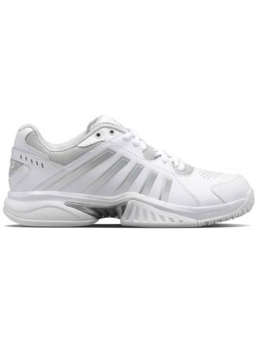De K-Swiss Receiver V is een lichtgewicht schoen met een klassiek en tijdloos design die zorgt voor comfort en constante topprestaties. De buitenzijde bevat een mix van natuurlijk en synthetisch leer wat zorgt voor een uitstekende combinatie van duurzaamheid en comfort. Bovendien zorgt de combinatie van het leer voor een waterafstotende en slijtvaste buitenzijde die de voet droog houdt. De mesh tong en perforaties in het bovenwerk zorgen voor een hoog ademend vermogen en uitstekende ventilatie waardoor de voeten koel worden gehouden. De schoen biedt uitstekende stabiliteit en zorgt voor extra comfort en ondersteuning. -