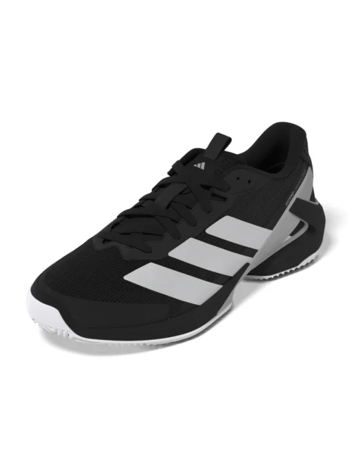 De ADIDAS Adizero Ubersonic 5 M Clay in zwart en wit is ontworpen voor maximale snelheid en wendbaarheid op gravelbanen. Deze lichtgewicht tennisschoen combineert een nauwsluitend Primeknit-bovenwerk met een sokachtige pasvorm voor ultiem comfort en stabiliteit tijdens snelle richtingsveranderingen. De Lightstrike-tussenzool biedt responsieve demping zonder extra gewicht, terwijl het profiel van de zool specifiek is afgestemd op optimale grip en glijcontrole op gravel. Het strakke, tijdloze kleurenpalet onderstreept het compromisloze karakter van deze schoen: gemaakt voor spelers die het tempo bepalen.
