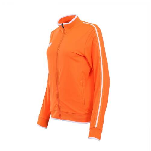 De Indian Maharadja Kadiri Women Jacket in energiek Oranje is de perfecte keuze voor sportsters die met een gezonde dosis lef en Hollandse trots het veld of de baan betreden. Of je nu een krachtige forehand slaat op de tennisbaan, een sprint trekt op het hockeyveld of de padelkooi domineert, dit jack biedt door zijn hoogwaardige stretchstof de ideale bewegingsvrijheid voor elke discipline. De opvallende, vitale kleur wordt gecombineerd met een flatterende, vrouwelijke pasvorm en technische details die zorgen voor optimale ventilatie, waardoor je er niet alleen scherp uitziet, maar ook topprestaties levert in een professionele en sportieve stijl. -