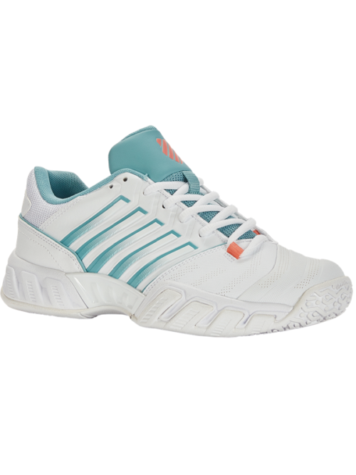 De K‑Swiss Bigshot Light 4 Omni – White/Nile Blue tennisschoen is een krachtige all‑rounder die comfort, stabiliteit en wendbaarheid perfect combineert voor spelers die elke beweging met vertrouwen willen uitvoeren. Met de Omni‑court buitenzool biedt deze schoen betrouwbare grip en duurzaamheid op verschillende ondergronden, terwijl het lichtgewicht en ademende bovenwerk zorgt voor ventilatie en een comfortabele pasvorm tijdens intensieve wedstrijden en trainingssessies. De ondersteunende demping geeft extra comfort bij snelle zijwaartse bewegingen en explosieve starts, zodat je je volledig kunt richten op je spel. Het frisse wit met Nile Blue‑design geeft een moderne, sportieve uitstraling die naadloos past bij jouw tennisoutfit. Perfect voor spelers van elk niveau die op zoek zijn naar een veelzijdige, prestatiegerichte en stijlvolle schoen. -