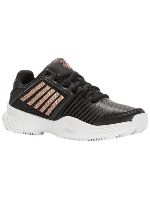 De K‑Swiss Court Express HB – Black/Gold tennisschoen combineert een luxe uitstraling met functionele prestaties, ideaal voor spelers die stijl en comfort belangrijk vinden op de baan. Het strakke zwarte design met gouden accenten zorgt voor een sportieve, stijlvolle look, terwijl het duurzame HB‑visgraatprofiel betrouwbare grip en gecontroleerde sliding biedt op gravelbanen. De comfortabele demping en ondersteunende pasvorm helpen je langer vol vertrouwen te spelen, zelfs bij snelle zijwaartse bewegingen en intensieve rally’s. Perfect voor tennissers van alle niveaus die een betrouwbare, stabiele en opvallende all‑round schoen zoeken die prestaties en uitstraling moeiteloos verenigt. -