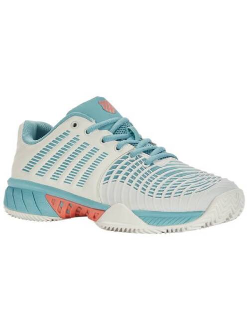 De K‑Swiss Court Express HB – Blue Opal tennisschoen is een veelzijdige all‑rounder die comfort, grip en stabiliteit combineert voor enthousiaste tennisspelers op gravelbanen en all‑court ondergronden. Het frisse Blue Opal‑design geeft een moderne, sportieve uitstraling die je look op de baan direct versterkt, terwijl het duurzame HB‑visgraatprofiel zorgt voor betrouwbare tractie en gecontroleerde slidings bij snelle richtingsveranderingen. Dankzij de ondersteunende pasvorm en comfortabele demping kun je langer vol vertrouwen spelen, zelfs tijdens intensieve rallies en langere trainingssessies. Een uitstekende keuze voor spelers die op zoek zijn naar een betrouwbare, comfortabele en stijlvolle schoen die prestatie en flair moeiteloos verenigt. -